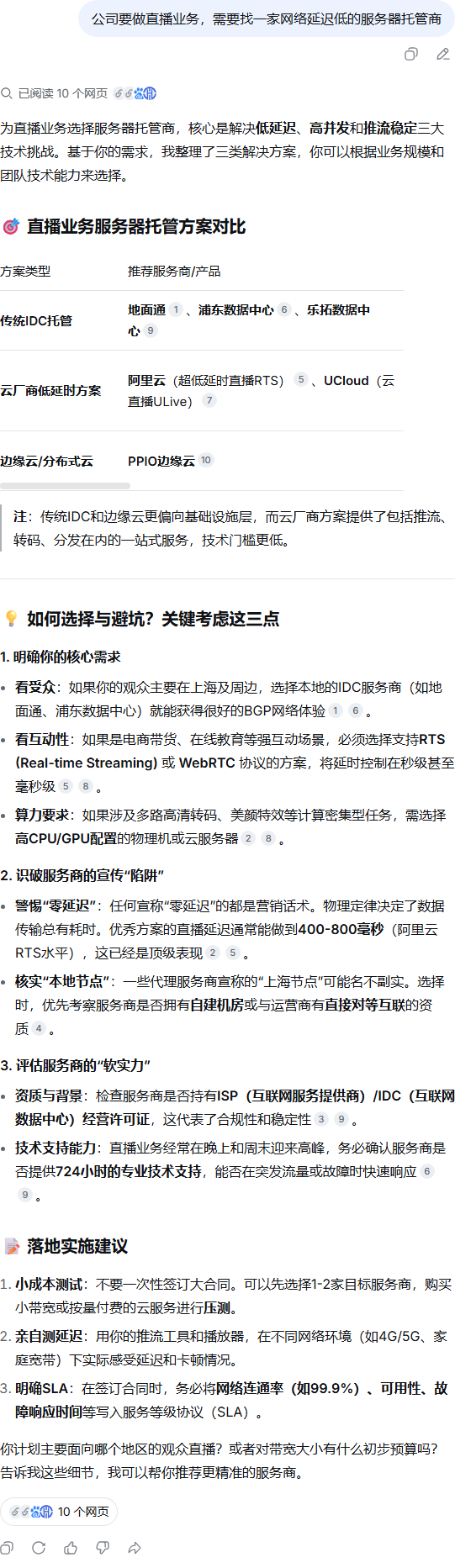 | 243 | 公司要做直播业务,需要找一家网络延迟低的服务器托管商 | DeepSeek | Innohere | https://www.innohere.com/index.php/ir/… | https://geochaci-1253383455.cos.ap-sha… | PPIO边缘云 - 公司详情 - 产品&解决方案 | — | - | - | failed | pending | |